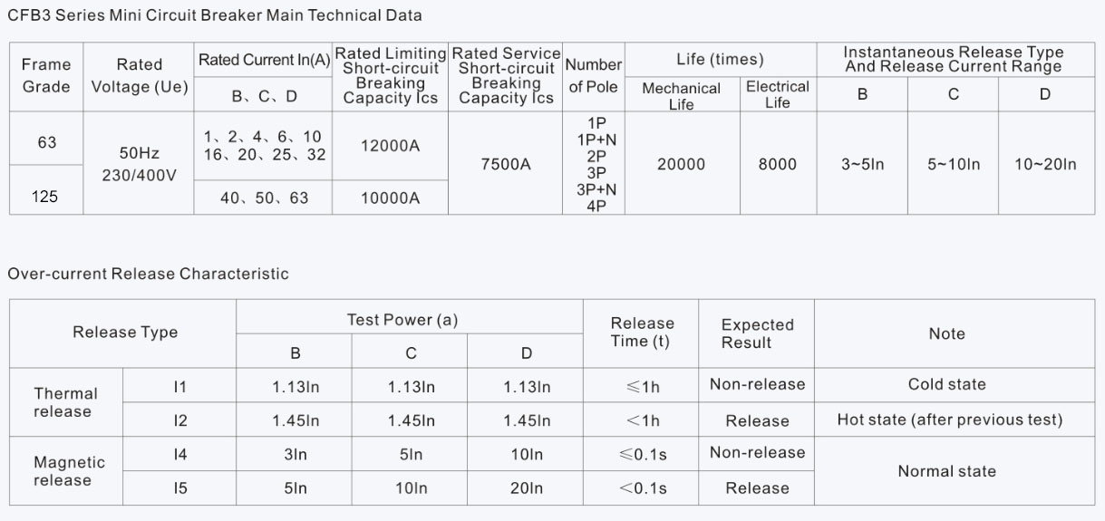 CFB3-63/125シリーズのミニチュア回路ブレーカーは、230V/400Vの定格電圧と125Aの定格電流が50/60Hzあたりの周波数で125Aの過負荷と短絡の保護に適しており、通常の条件下で回路の操作のまれ/OFF操作にも使用できます。