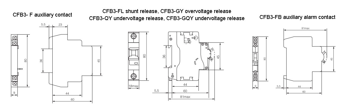 CFB3-63/125シリーズサーキットブレーカーには、CFB3-F補助コンタクト、CFB3-FB補助アラームコンタクト、CFB3-FLシャントリリース、CFB3-QY低電圧リリース、CFB3-gy gy過剰放出リリース、CFB3-gyの過剰な放出リリースなどのアクセサリーが装備されています。