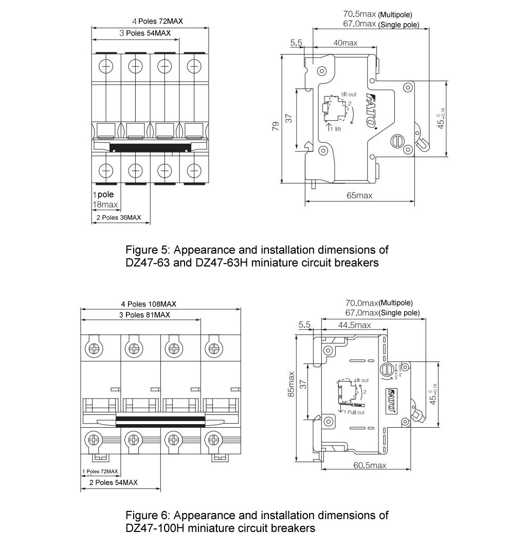 DZ47シリーズの新しいミニチュア回路ブレーカーは、AC 50Hz、定格電圧230/400V、および定格電流を最大100A以下の回路でライン、照明、および電源機器の過負荷と短絡保護に適しています。また、通常の条件下でのラインや機器のまれな切り替えにも使用できます。