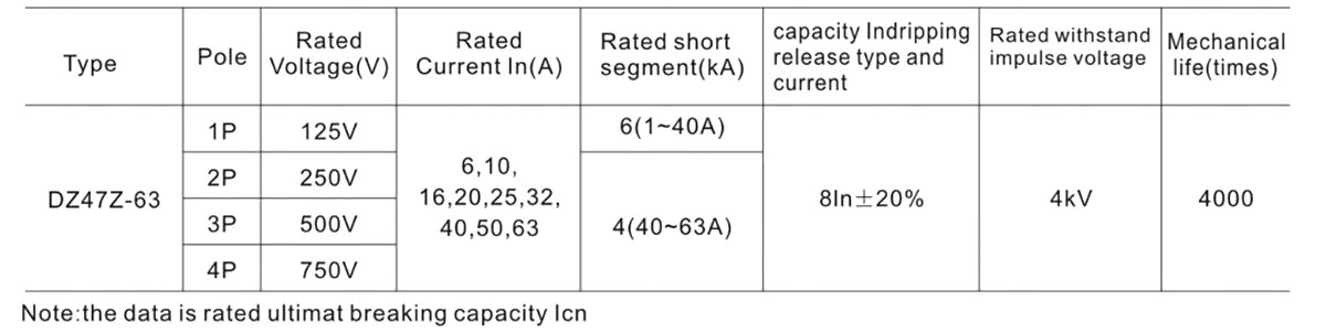 DZ47Zシリーズのミニチュア回路ブレーカーは、定格電圧750Vと、ライン、照明、電源機器の過負荷と短絡から63A以下の定格電流でDC回路を保護するように設計されています。さらに、通常の状況でラインや機器を時折切り替えるために使用できます。